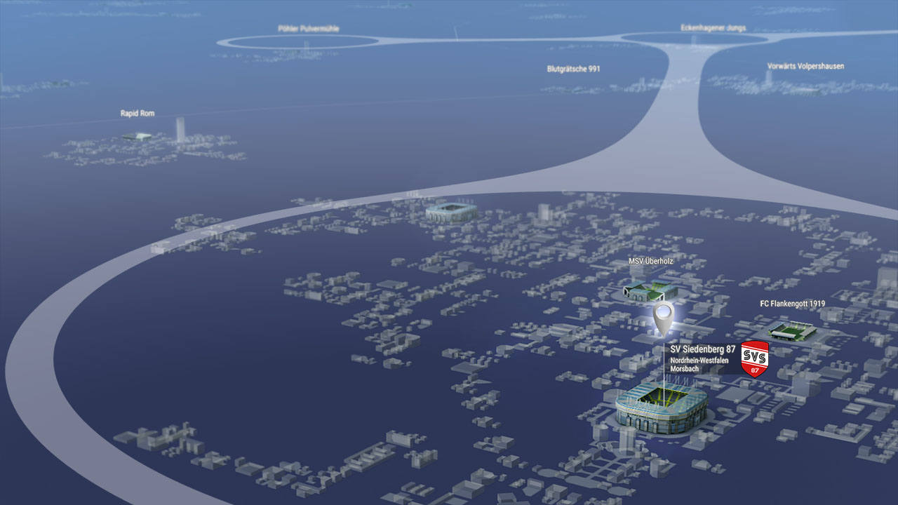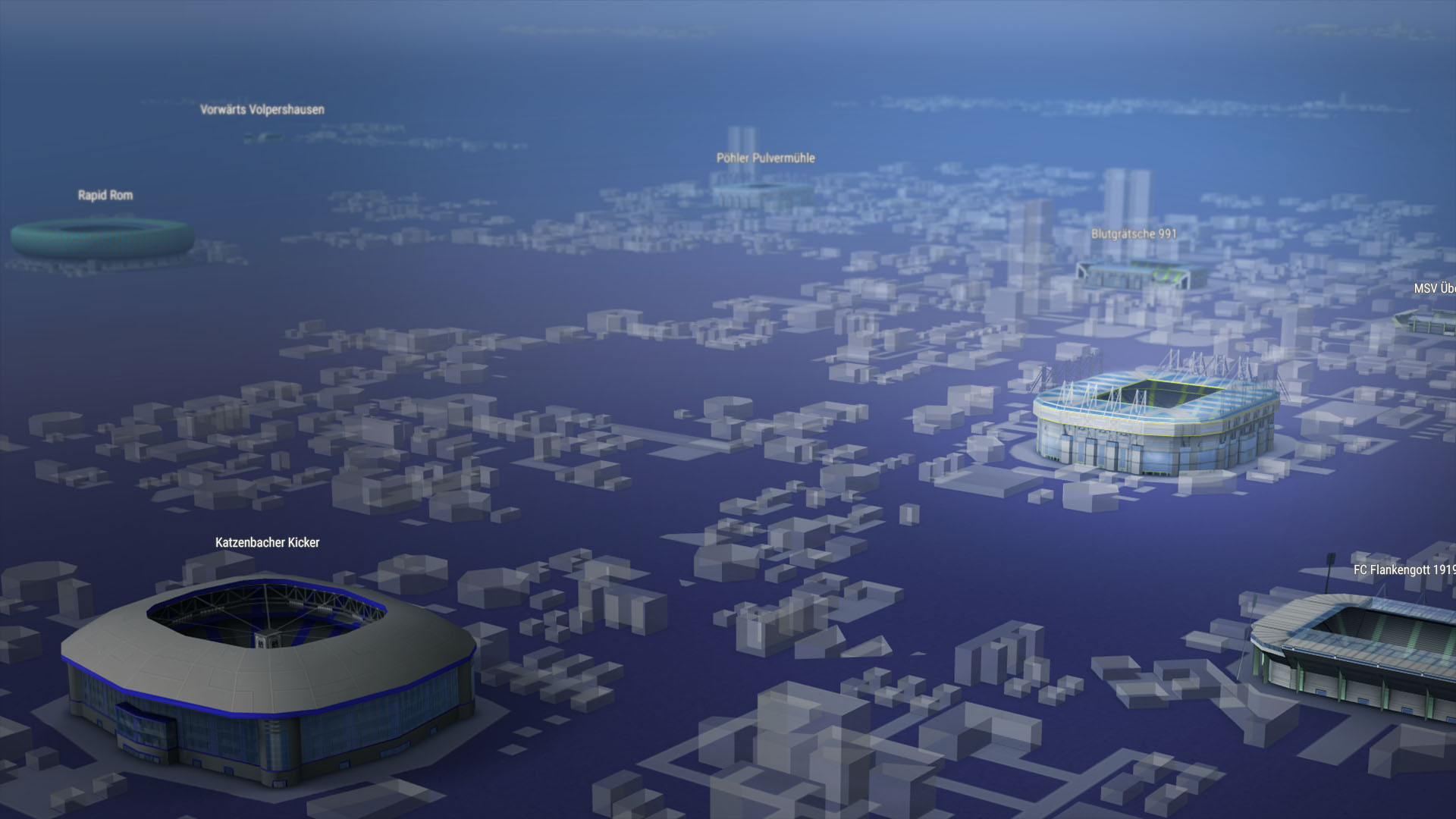 Bei ONLINELIGA.de hast du Fußballdeutschland als 3D-Ansicht direkt auf deinem Bildschirm. Die Kartenansicht erlaubt es, in jedes Bundesland und jede Stadt hinein zu zoomen wo sich dann die einzelnen Dorfplätze, Stadien und eindrucksvollen Arenen in ganz Deutschland vor dir auftun. Du siehst auf der Karte nicht nur Bundesländer, Städte und Teams, sondern auch eine Vielzahl sozialer Beziehungen – zum Beispiel, über wie viele Ecken du mit einem anderen Spieler an einem weit entfernten Ort vernetzt bist. Dieses einzigartige Feature unterstreicht die realistische Anmutung der ONLINELIGA.de. Probiere es aus!