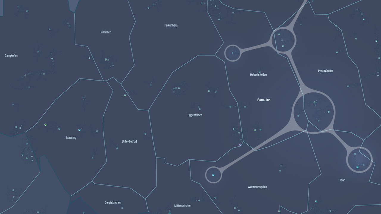 Die Kartenansicht erlaubt es, in jedes Bundesland und jede Stadt hinein zu zoomen: Du siehst die genauen Umrisse der Ligen, die Stadien und über wie viele Ecken du mit einem anderen Spieler an einem weit entfernten Ort vernetzt bist.